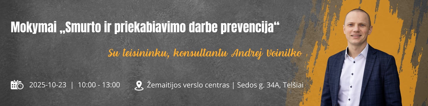 Vieta: Žemaitijos verslo centras, Sedos g. 34A, Telšiai, C korpusas, konferencijų salė (2 aukštas)